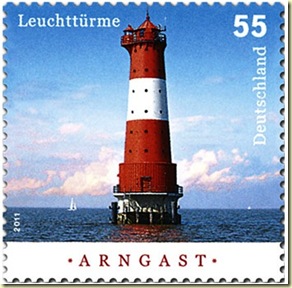 Germany has issued a set of special postage stamps depicting Arngast and Dahmeshoved lighthouses on July 7 2011. This issue is a part of the "Bacon" series which aims to raise awareness of the diversity of German lighthouses.