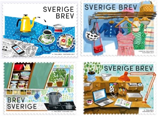 Her interest in stamps as a piece of art and message conveyor emerged 20 years ago when she was studying graphic design at Beckmans College of Design.