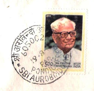 The department of posts introduced a permanent pictorial cancellation shown below at Sri Aurobindo Ashram, Puducherry on 15th August 2013, to mark the birth anniversary of the revolutionary-turned-philosopher-saint Sri Aurobindo. The design of the cancellation is based on the symbols of Sri Aurobindo and the Mother.